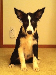 Well, we finally bit the bullet and got a dog today. Our friends found a breeder in Iowa (about 2 hours away) that had 3 border collie pups. We weren’t sure and really debated whether or not we should even go. But, we decided that we should atleast go and look… And of course, the MINUTE we pulled up, this little guy jumped into our laps. He was relentless!