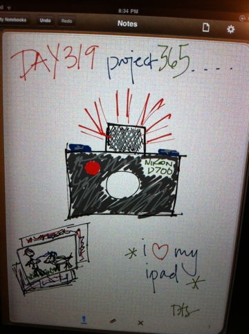 Day 319 Posted on November 15, 2010 by dtsphoto365 I live for finding new apps… One of my favs – Penultimate on the iPad. Looks like a moleskine, but let’s you hand write or draw!