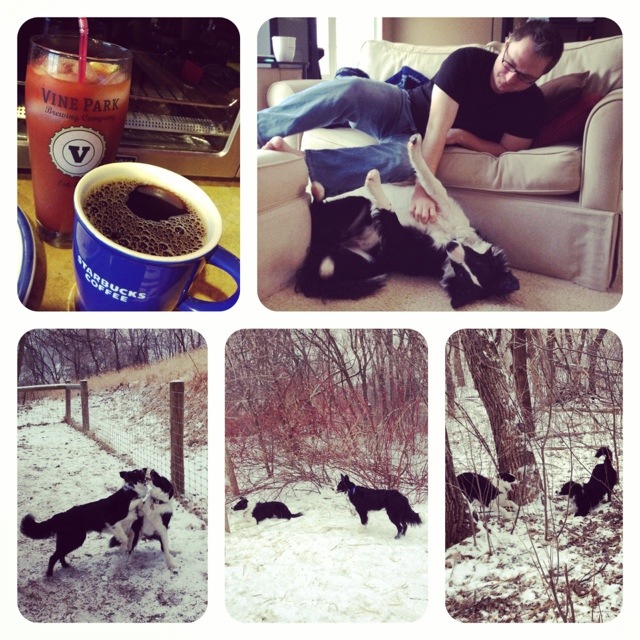 22.366.2012 Posted on January 22, 2012 by dtsphoto365 Lazy Sunday = Clean up from party, Bloody Mary & Coffee, dog park, photo fun, DVR. I love these shots of the park during snow. And Diohgé loved playing with his BFF Lucy.