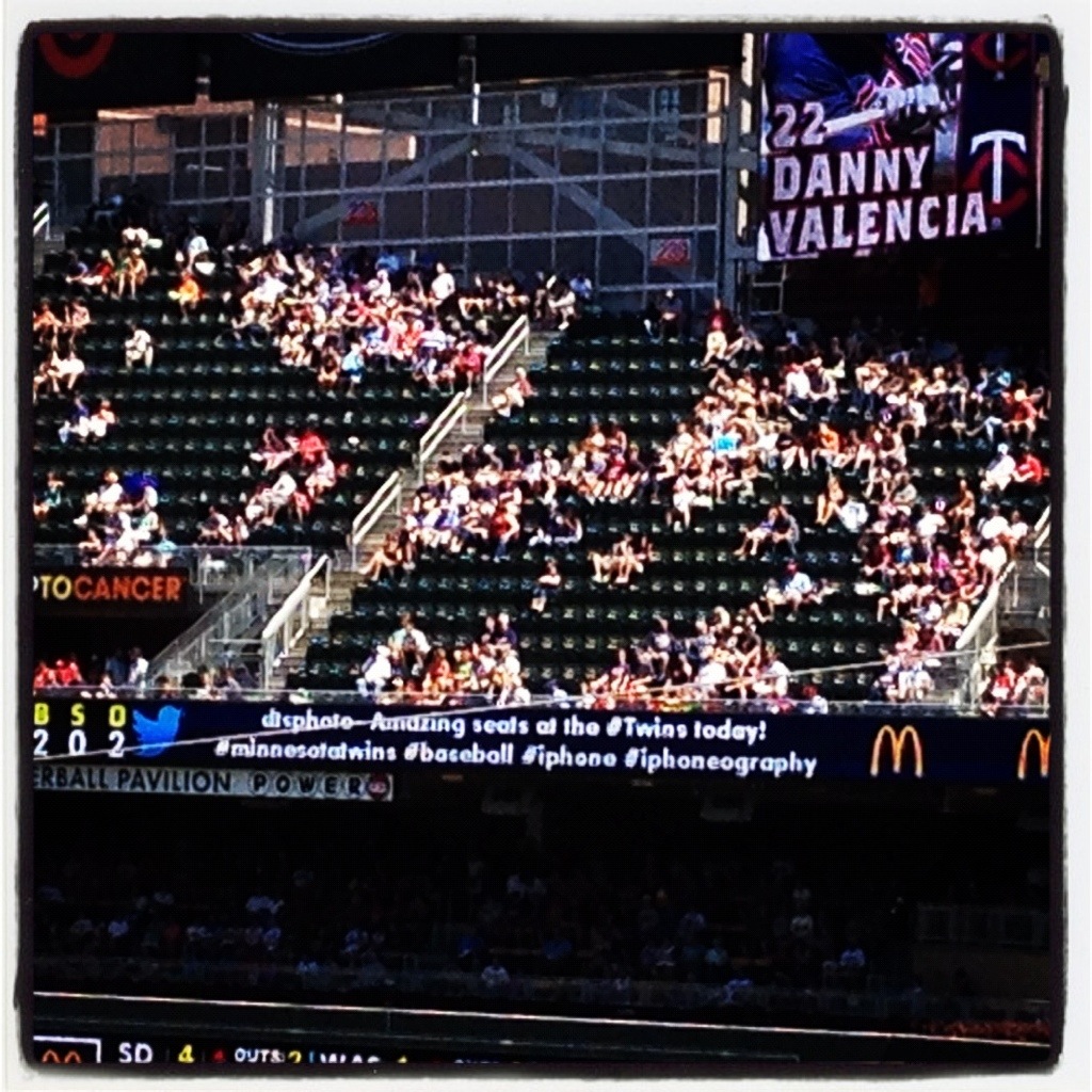 211.366.2012 Posted on July 29, 2012 by dtsphoto365 Went to see the Twins play the Indians today. While my dad loved the Indians, the Twins swept them today in a 3 game series. 🙂 And my tweet made the board!