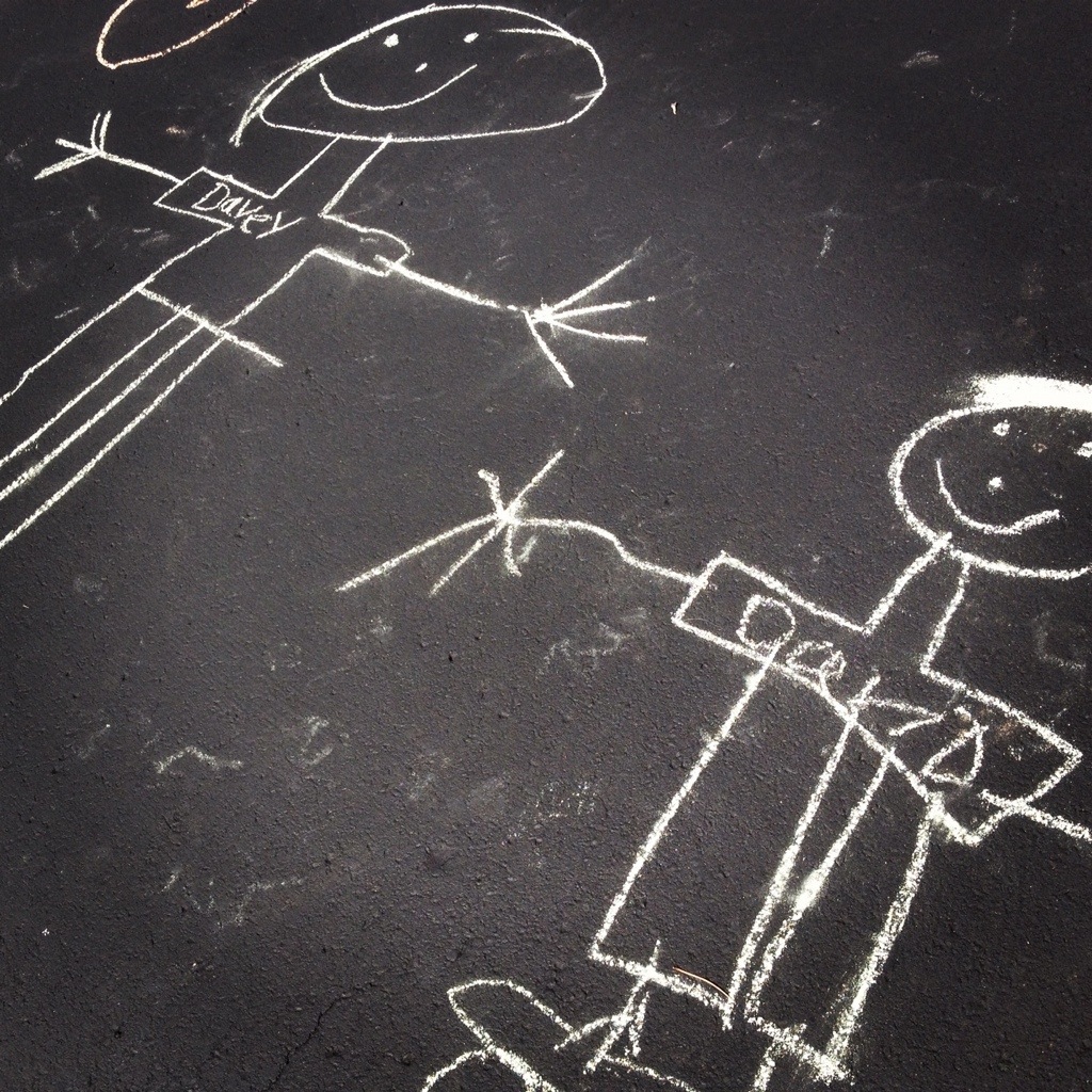 Went to a friend’s party tonight and we each had a sidewalk chalk greeting. The neighbor girls drew these for the party. 🙂