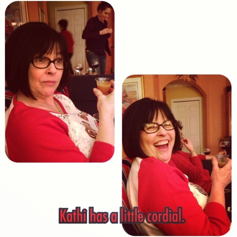 After dropping off half the load, we squeezed Dave into the car and headed off to Stow. We had dinner with the Garabedians and then opened up some wine. My mother enjoyed a cordial… Chocolate wine. I loved the reactions I captured. 🙂