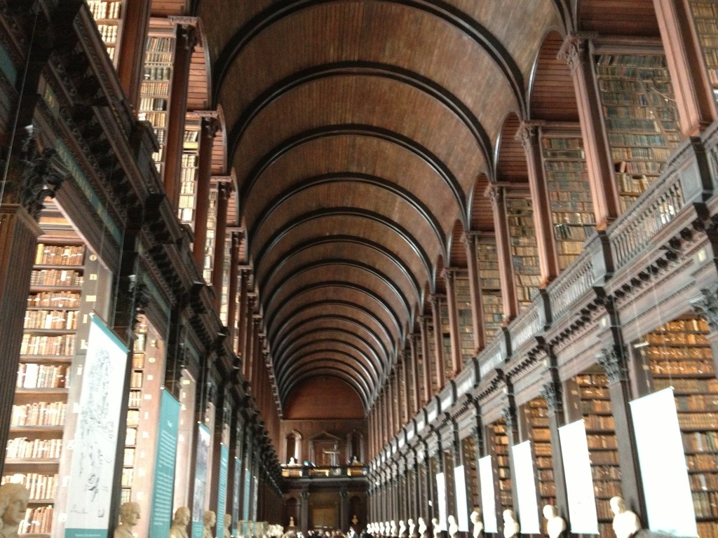 … And headed for Trinity College to see the Book of Kells. It’s from AD 800 and is a ridiculously beautiful version of the 4 gospels… Illustrated and written on vellum with amazing art. (No photos allowed.) We then headed up to the Old Library which had thousands of books… Organized by size!