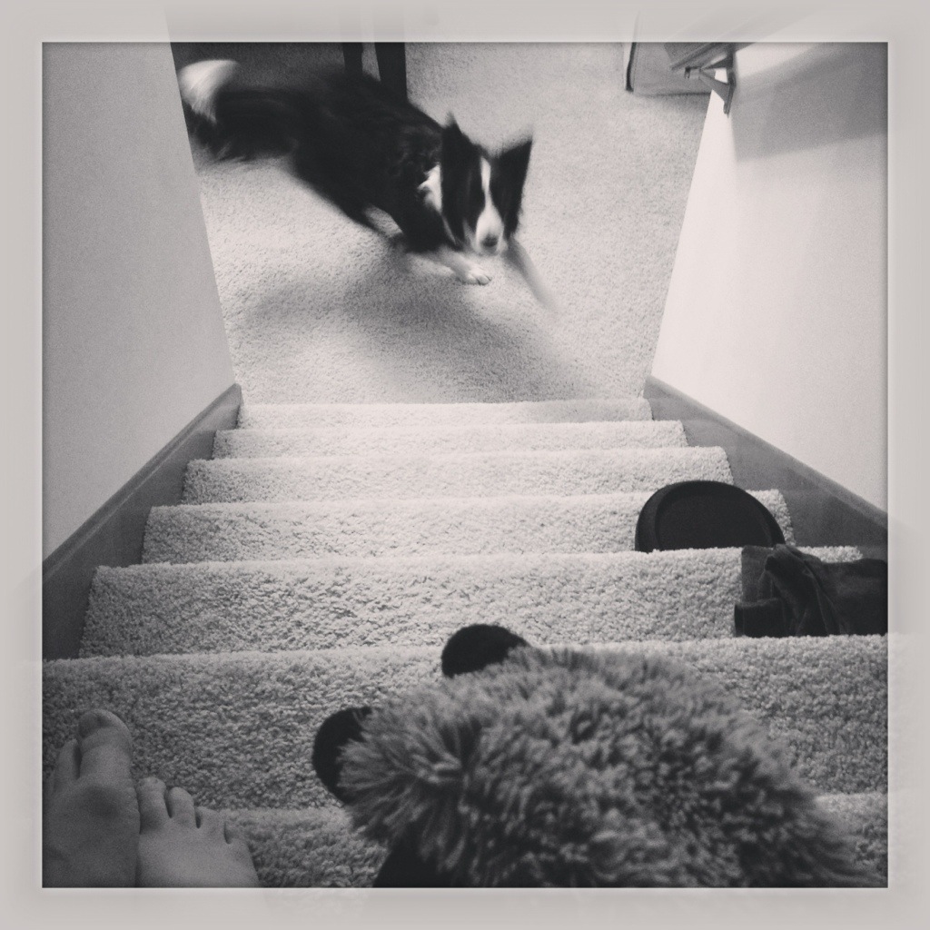 Poochy pup heard opossum calling him and came tearing around the corner to rescue him.