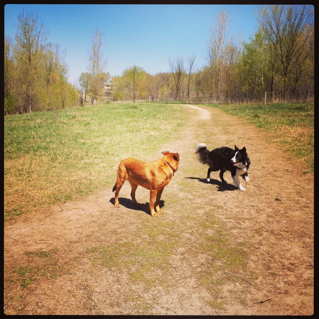 Today was a nice relaxing day… First, a couple of hours at the dog park with several friends. Diohgé hunting a victim: