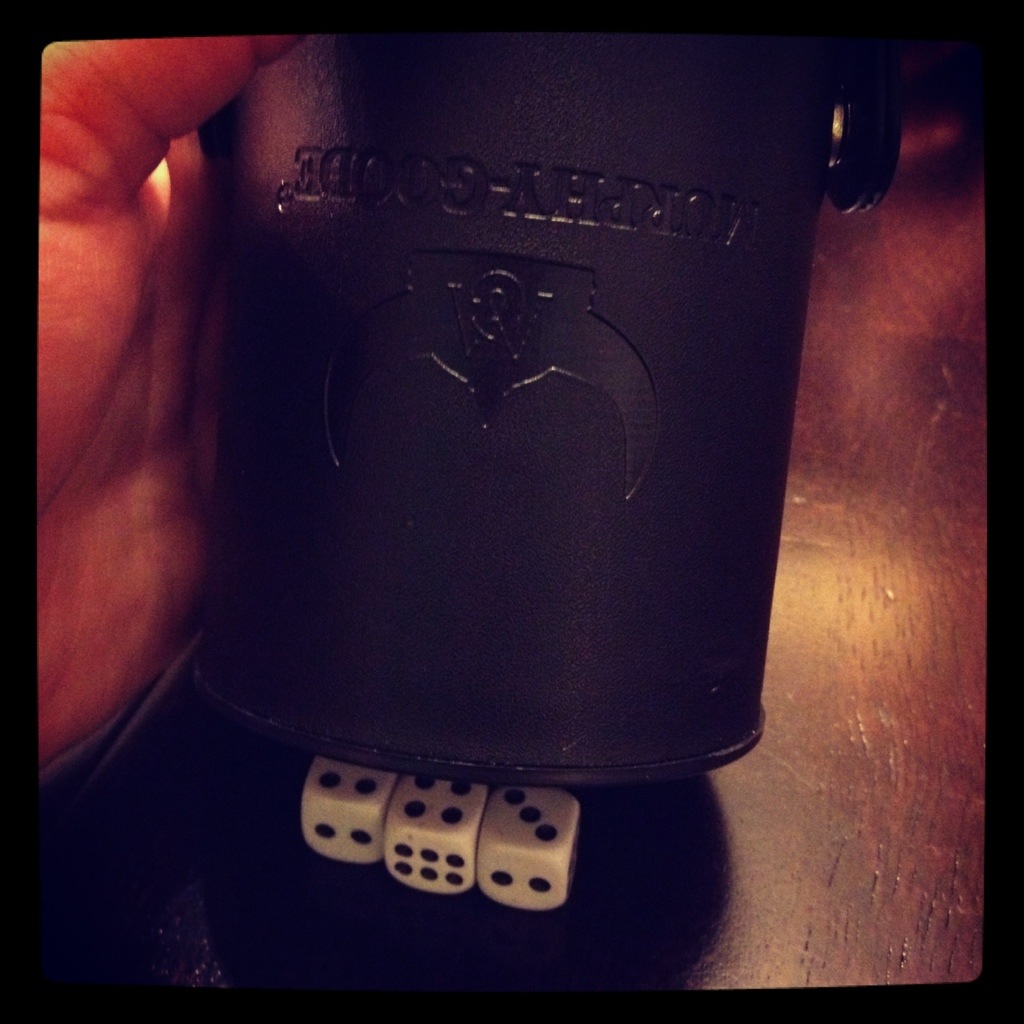 And then we played some Liar’s Dice… A game we bought in Napa, but Beth and Matthew taught us to play. It was a blast!