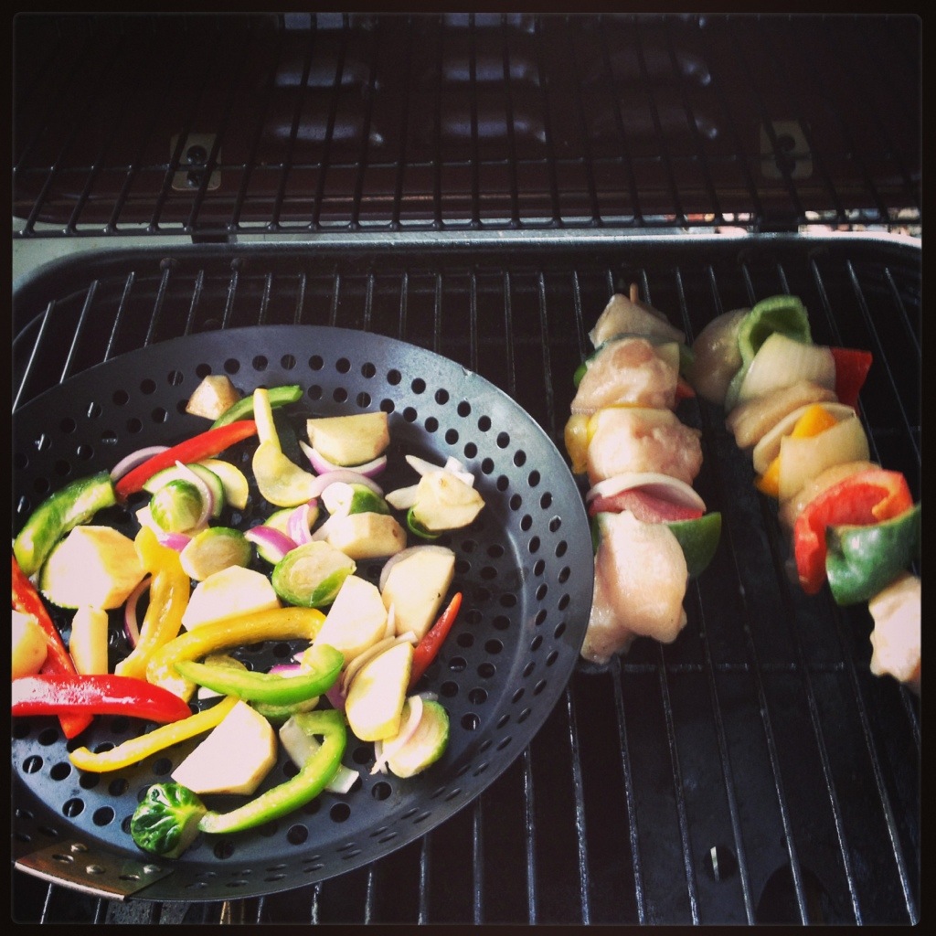 Then for dinner, I made some chicken kabobs and grilled veggies for dinner. Yum.