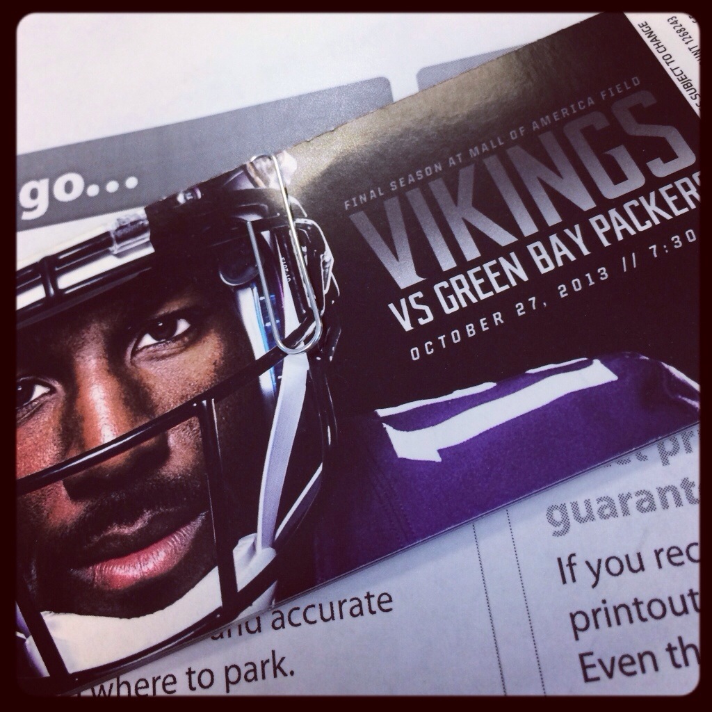 Today was a big day! First, I received our Vikings v Packers tickets for the end of October. So excited!!