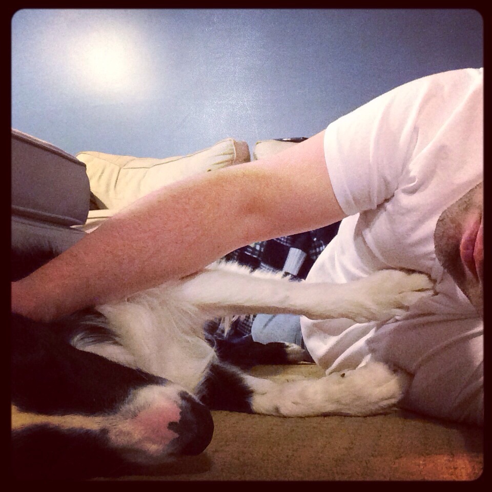 And of course this pooch is so much fun. He needs to have his paws on us when we are snuggling. I’m excited that my trips for tomorrow and next week got cancelled so I can stay home with him!