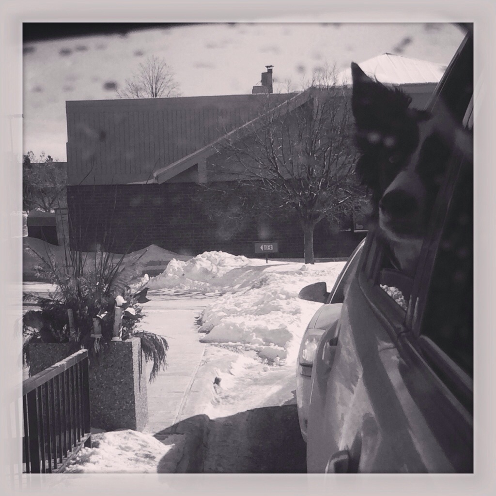 Then we went out for a drive. Even though it was -3 and -19 windchill, I rolled down the window and he loved it. We picked up something at Starbucks too. He really enjoyed his treat. 🙂