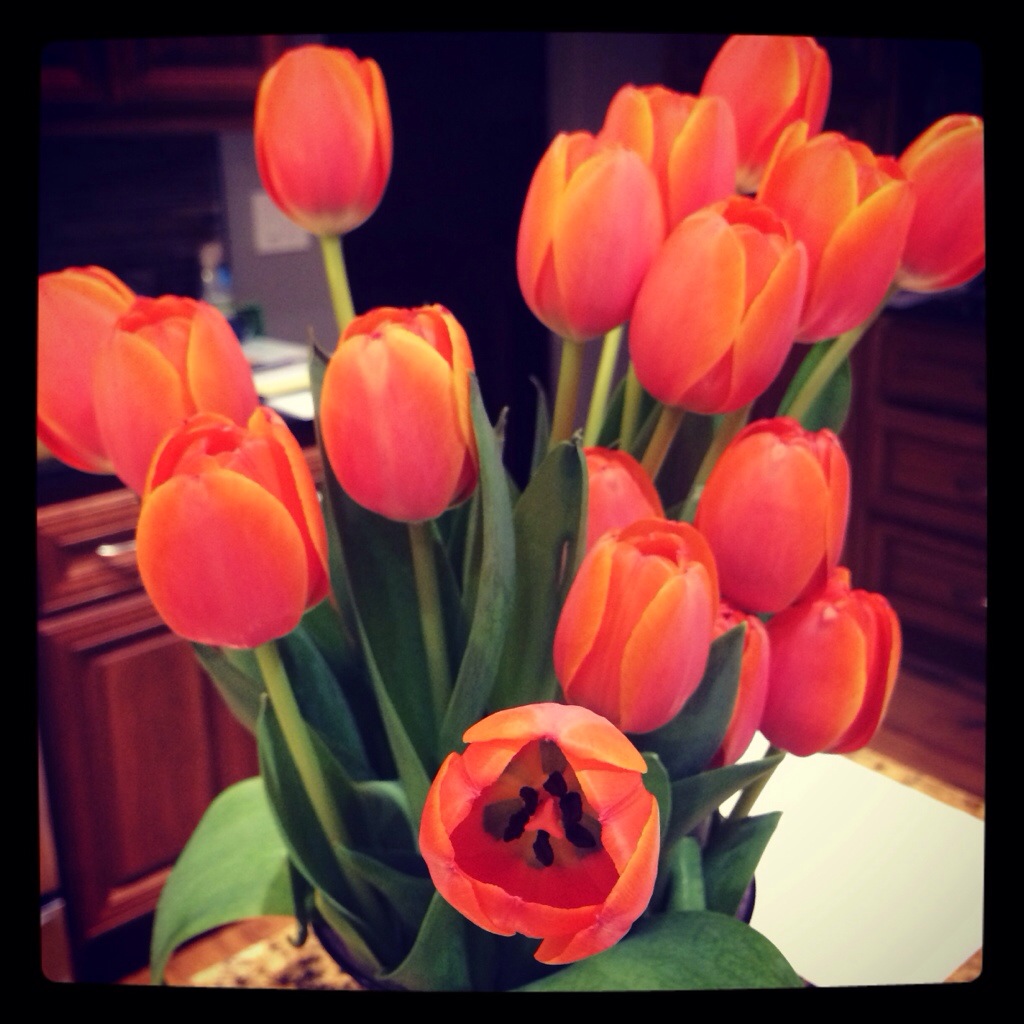 70.365.2014 Tulips Posted on March 11, 2014 by dtsphoto365 MMZ brought us tulips on Sunday and they are opening so well… They are my favorite! And of course the pooch is my other favorite. He’s so tired…