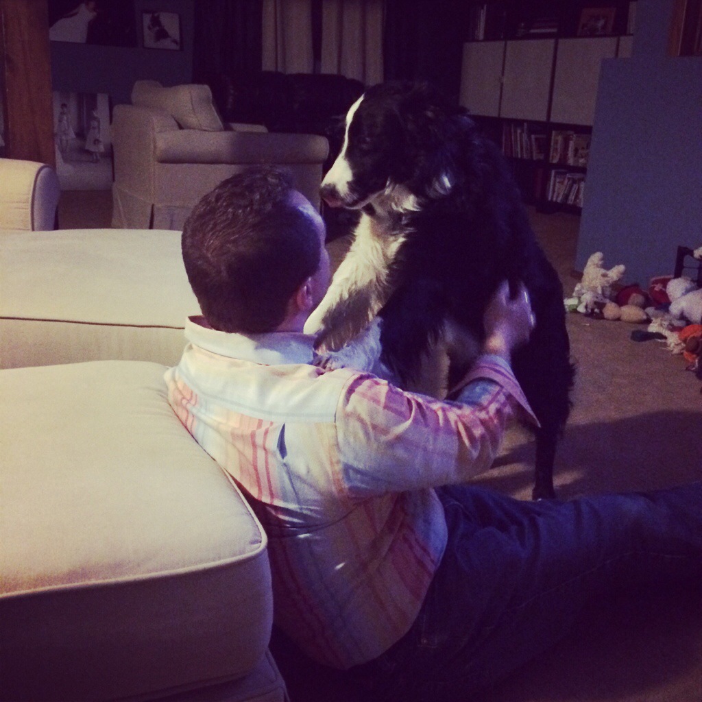 We have no idea how, but Diohgé thinks that when we say “shake it out”, he should jump up and give us kisses. Okay! Tonight he was excited to have Dave come home and shook it out for some love.