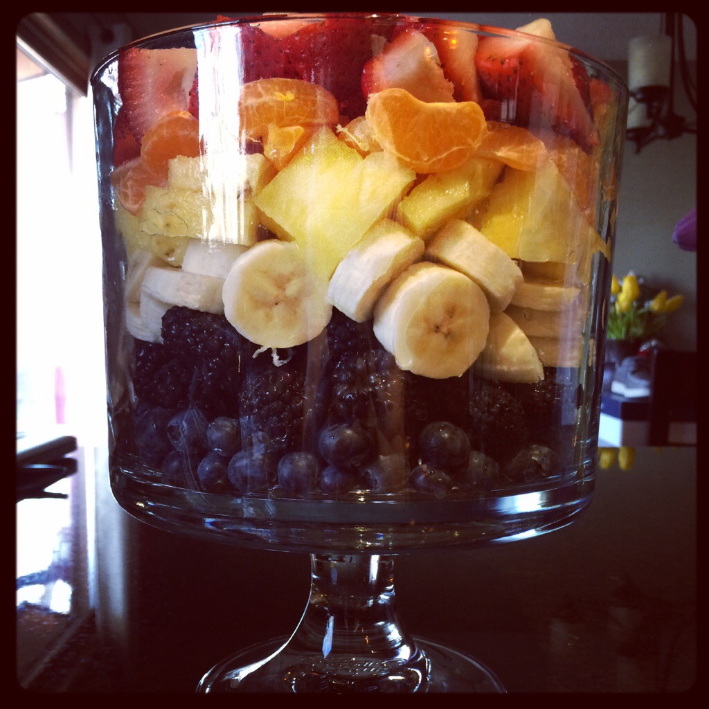 I made a fruit bowl for the brunch feast. Of course it was ROYGBIV colored.