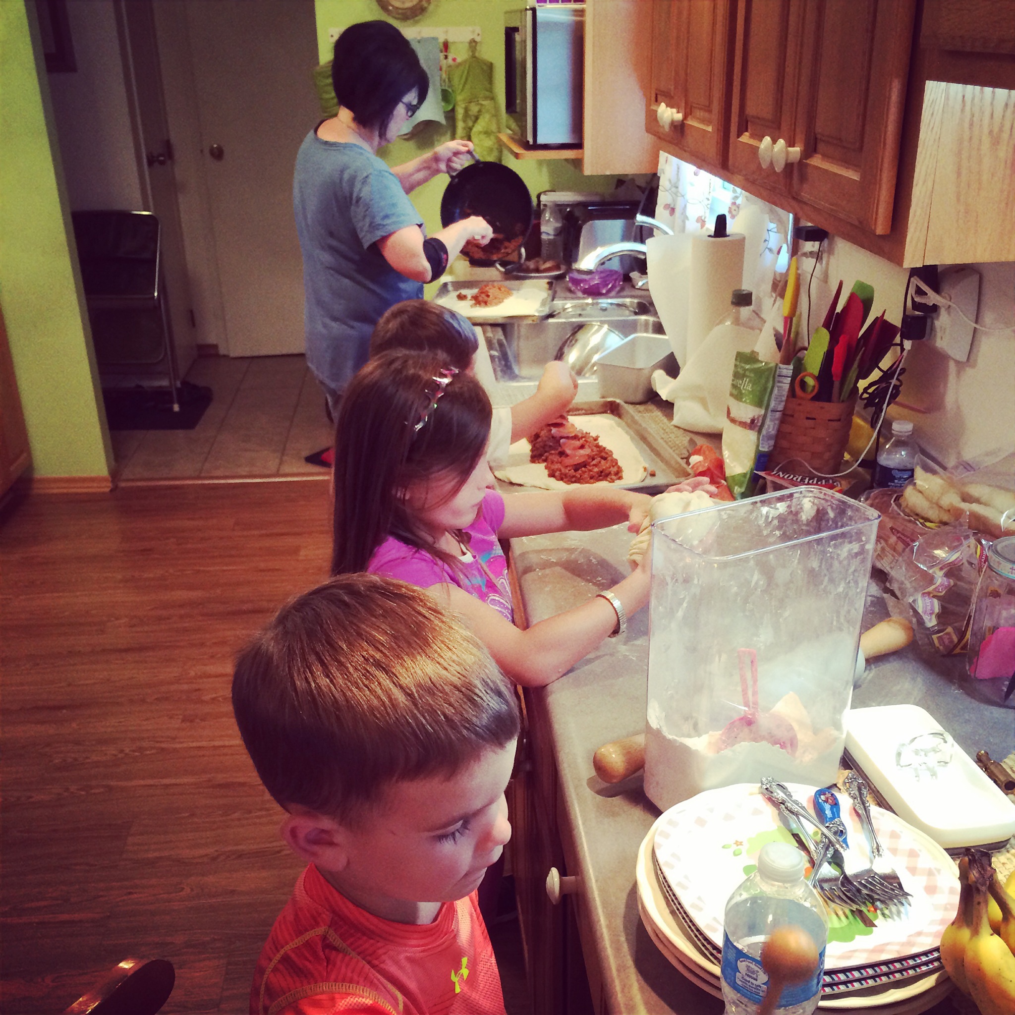 When we picked her up from school, we went to the park to give Layla a walk. The kids had a blast! Then we came home and helped Nammie make pizza bread.