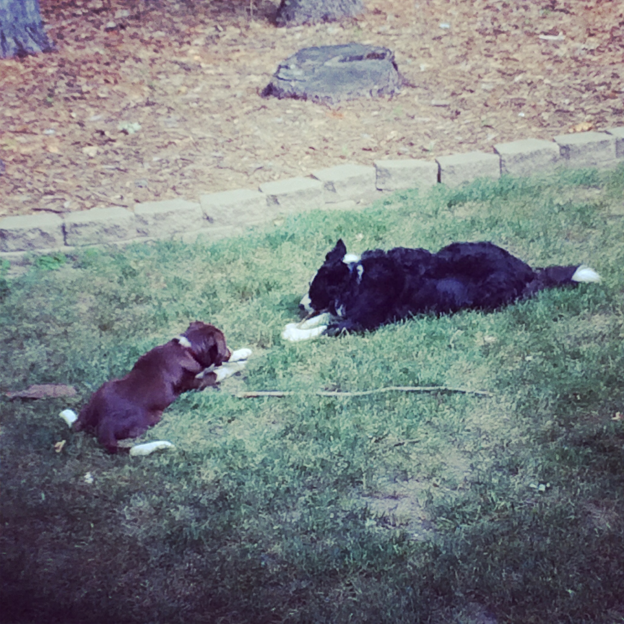 227.365.2014 Socialization Posted on August 16, 2014 by dtsphoto365 After a nice massage today, we spent some time catching up with JJK at the house and they got to meet the new pups. Then we all ended up over at MBBKs for a BBQ. Lots of fun and food and drink! The dogs are so tired!