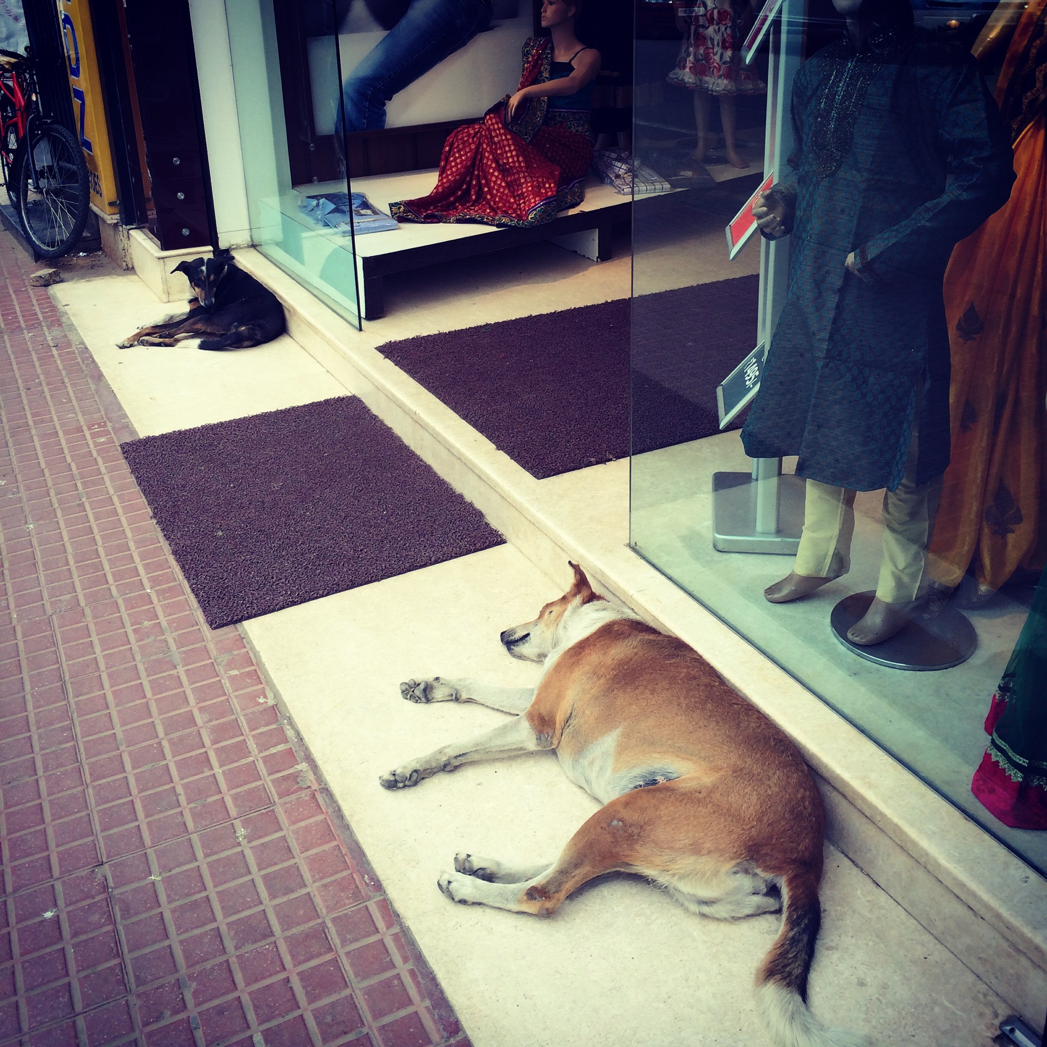 First day and all is well! Once we arrived at the hotel I unpacked, showered and took a nap. Then we had lunch and went out for a little bit of shopping. These stray pups were guarding the shops.