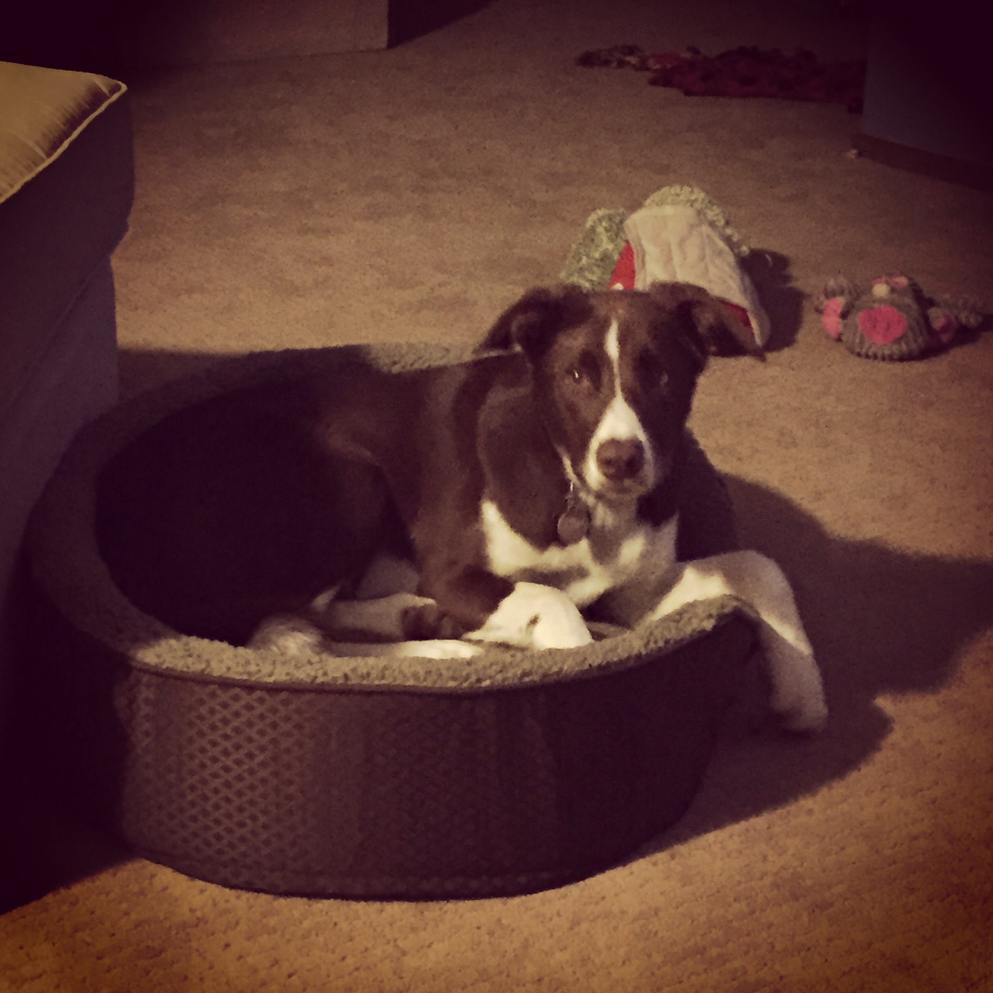324.365.2014 Heat Wave Posted on November 23, 2014 by dtsphoto365 It was 50 degrees here today! All of the snow melted and we had a great time at the dog park. I find it funny that the stalkers get stalked too. We also got this sweet boy a bed. We were told he loved them and he does! He curled right up into it.