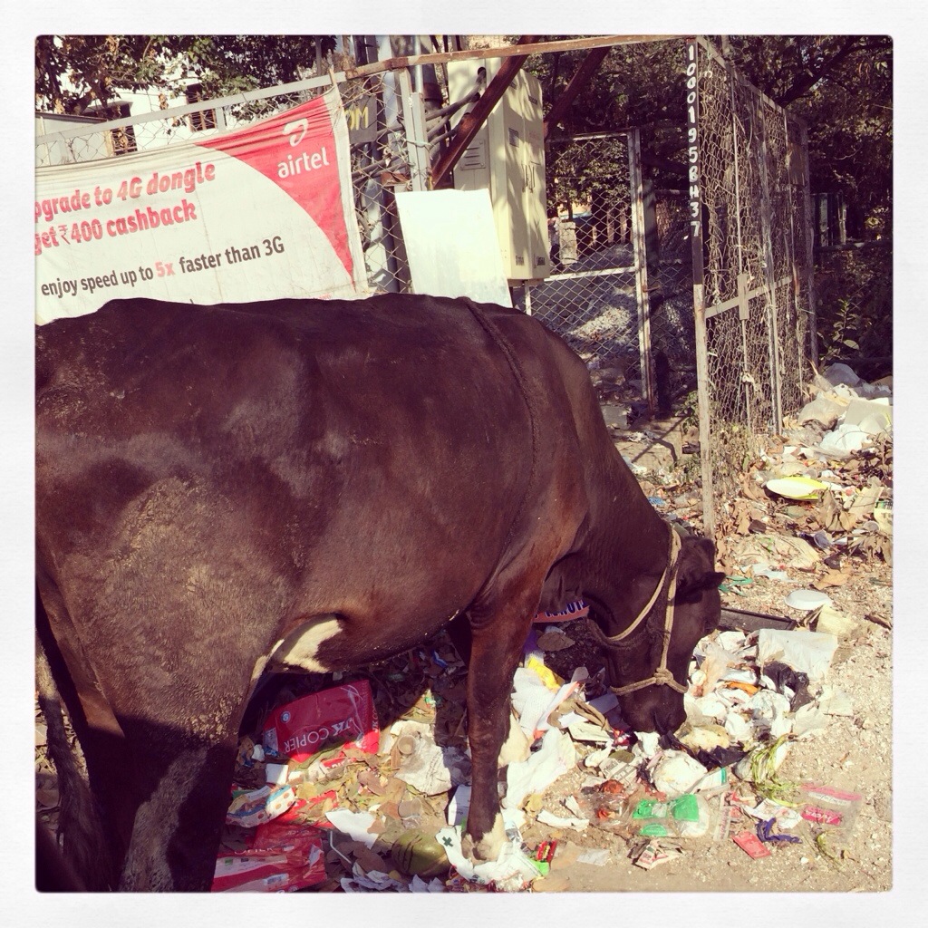 It’s not uncommon to see cows all over the roads. They eat trash and block drivers.
