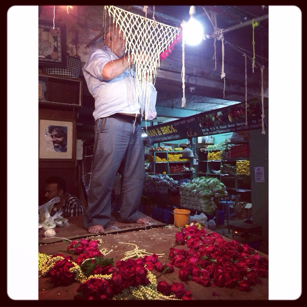 After work, our driver Chandru took us to a meat/fruit/vegetable/flower market. It was pretty cool, but also quite different. We parked and walked around which meant crossing the street in the middle of traffic. It didn’t smell great… People were staring at us (remember the kurtas!). But why go to India and not take a risk!?