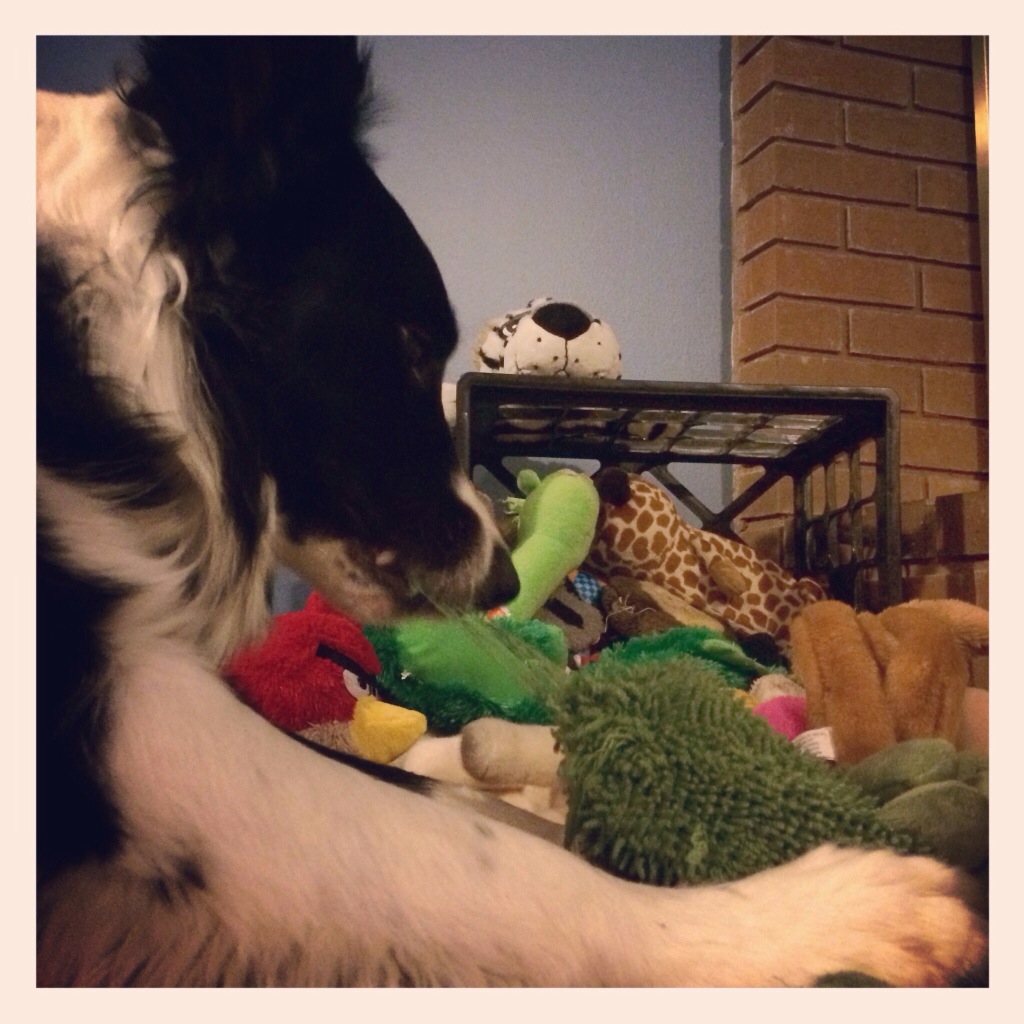 OMG. What a week. I’m so happy it’s over. So tonight Dave and I went to celebrate by having dinner at Jake’s. When we got home the pooch was excited to play. He was also excited to rip apart his toys.