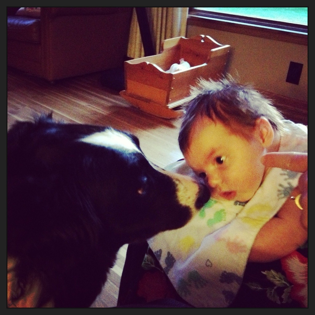 And look at the curious pooch meeting another new (and as Julie says), noisy friend!