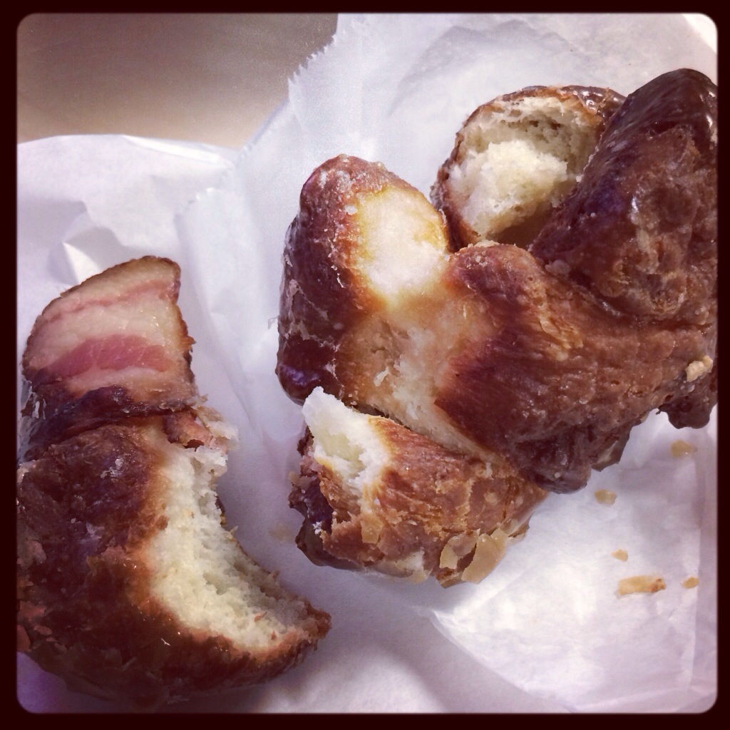Today would have my dad’s 67th birthday. So I celebrated in true fat kid style… An Angel Food Bakery Donaparte with bacon weaved in. And of course, some Michelob Ultra.