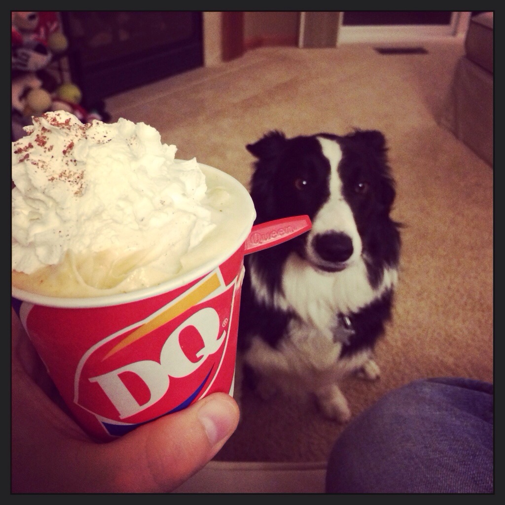 To celebrate, we all went out and had some dessert. The pooch wanted more than his fair share.