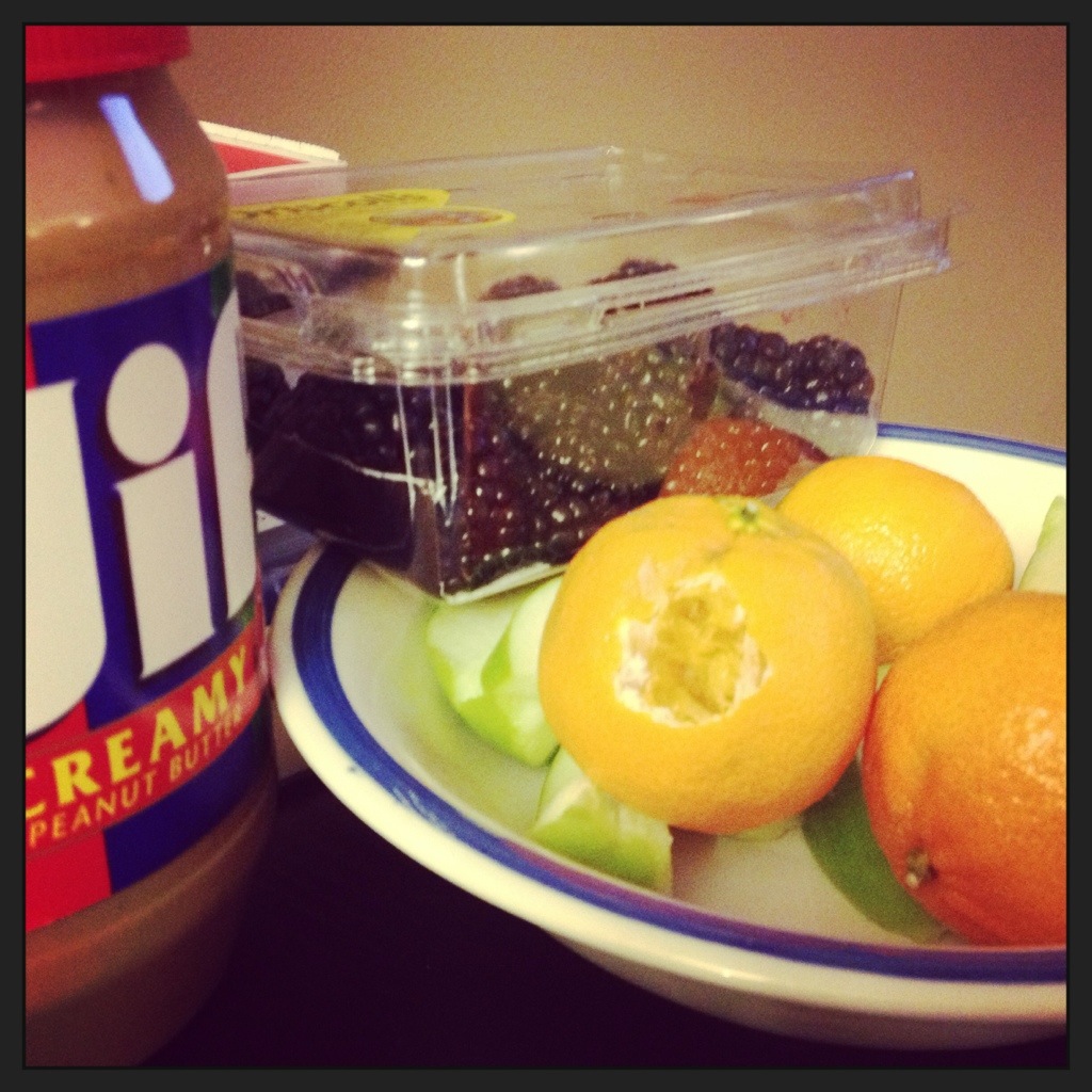 Our church is dropping off meals every other night… and they have been fantastic! Friends and family have brought over groceries, breakfast bagels, fruit and even gift cards to places. This yummy fruit arrangement arrived today and was almost consumed within several hours. My sister and I swear that we’ve lost weight on our “cookie and coffee diet”. 🙂