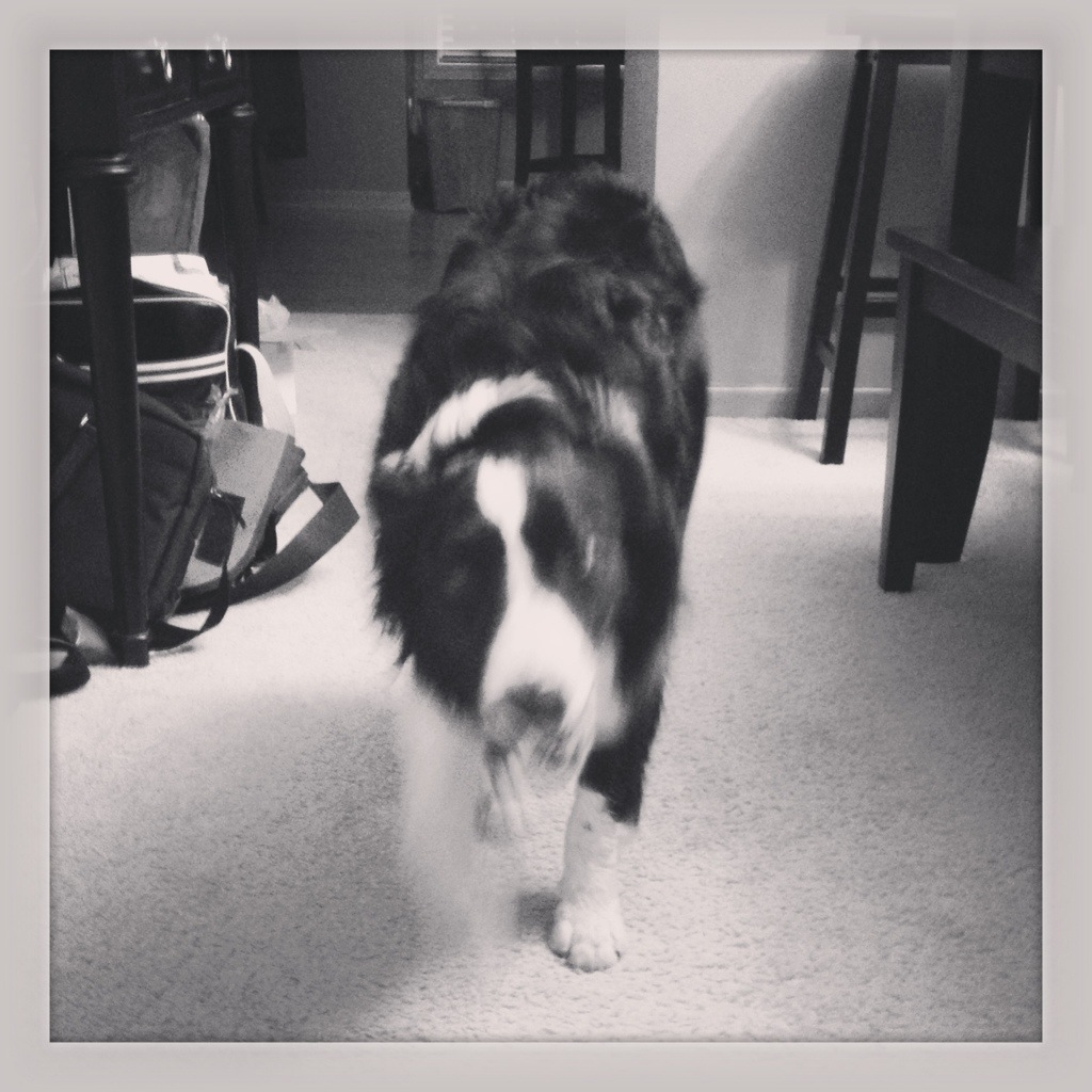 Pooch went to the park late tonight. I love when he comes home and searches me out. Ears down, tail wagging…