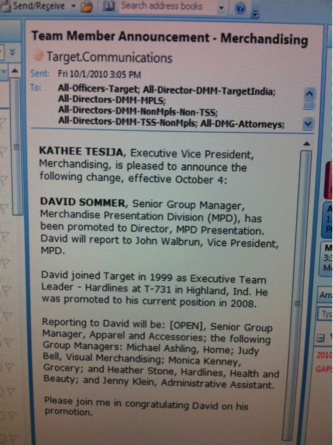 So, today was a pretty good day… I got a promotion!! I have the fortunate ability to stay in the same role with my same team, but was made a Senior Director. Fantastic!